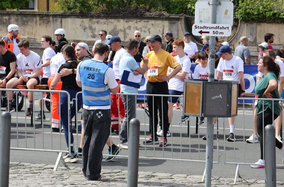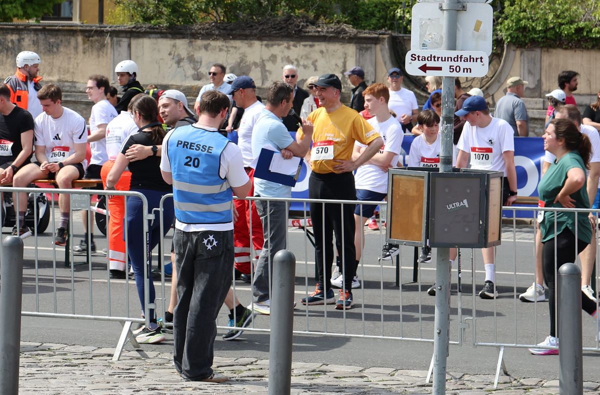 Schnellster Mann des Kirchenteams war Hans-Walter Kranert von der Don-Bosco-Berufsschule Würzburg mit einer Zeit von 21:55 Minuten, schnellste Frau Tina Hartl von der Caritas Einrichtungen gGmbH mit 25:02 Minuten. „Der Sport bietet die schöne Gelegenheit, sich unkompliziert und auf Augenhöhe zu begegnen, sich als Gemeinschaft zu erleben und miteinander etwas Schönes zu unternehmen“, erläuterte Bischof Jung vor dem Start seine Motivation für die Teilnahme. Für gewöhnlich nehmen Bistum und Caritas am Firmenlauf in Eibelstadt teil. Da dieser in diesem Jahr am Vorabend von Christi Himmelfahrt stattfindet, kollidiert dieser Termin aber mit dem zeitgleich startenden 104. Deutschen Katholikentag. Im Ziel wurde der Bischof vom Streckensprecher interviewt und verriet, dass er einmal wöchentlich ein Lauftraining absolviert. Seine Teilnahme am Residenzlauf nannte er „Warmlaufen für den Katholikentag“. Die fünftägige Großveranstaltung vom 13. bis zum 17. Mai sei kein Sprint, sondern erfordere längeren Atem.