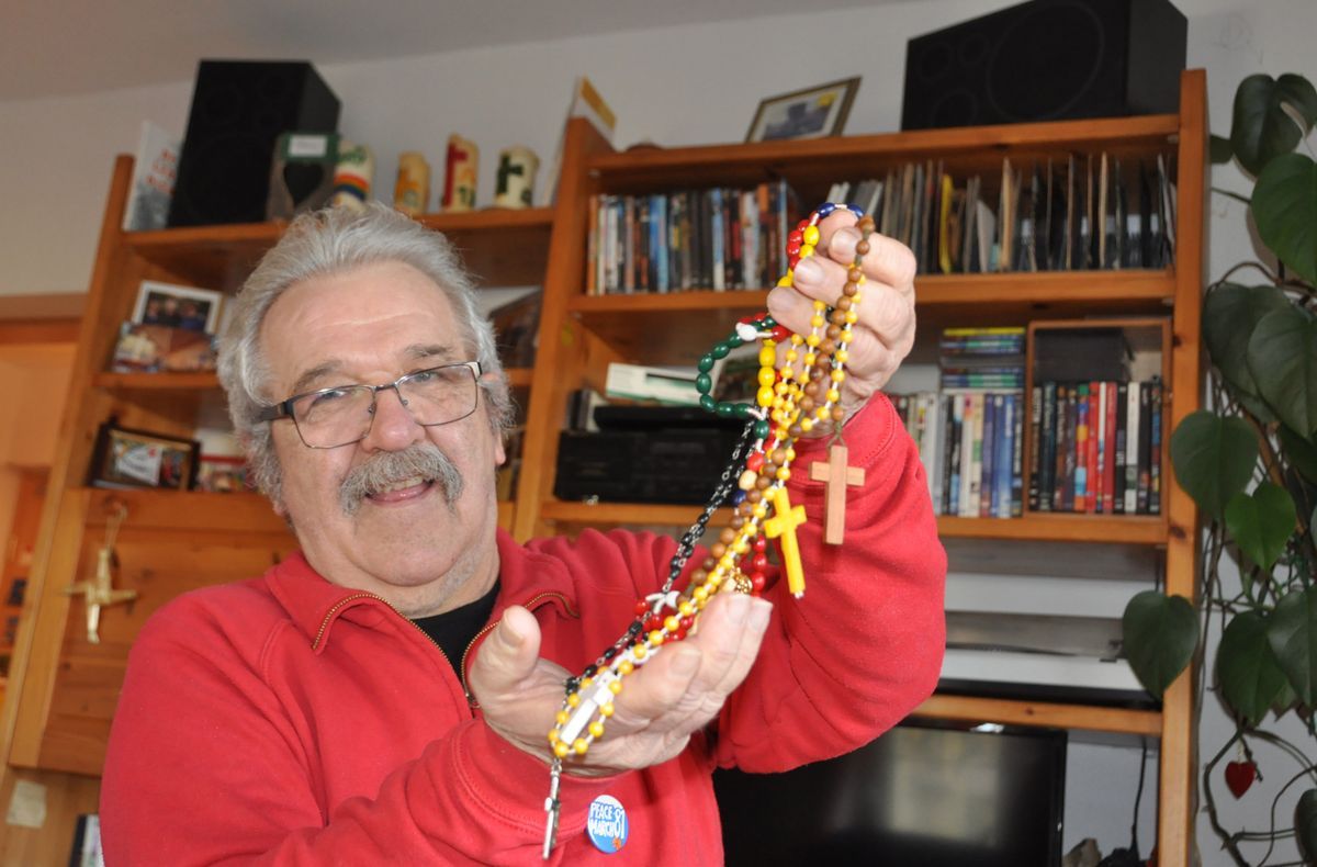 Der Schweinfurter Elmar Rachle hat bereits mehr als 30 Rosenkränze für die Aktion gesammelt. Rachle gehört der Weggemeinschaft der Würzburger Ritaschwestern an. Dort tauscht er sich regelmäßig mit anderen Christinnen und Christen aus. Bei einer Fahrt der Ritaschwestern ins italienische Cascia habe er auch erstmals von der Aktion „Ein Rosenkranz geht um die Welt" erfahren. Der ausgebildete Umwelt- und Abfallberater Rachle war sofort begeistert: „Mir liegt zum einen am Herzen, dass geweihte Rosenkränze nicht in Schubladen rumliegen oder sogar im Müll wandern, zum anderen freue ich mich über jeden Gegenstand, der wieder eine sinnvolle Verwendung findet."